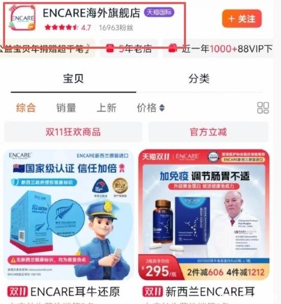 15. 事发源头指向天猫国际旗下的“ENCARE海外旗舰店”。